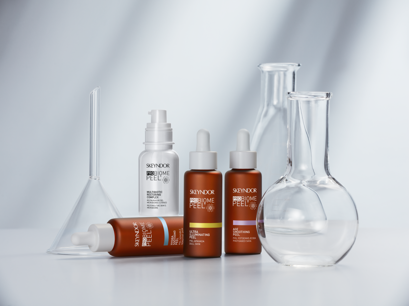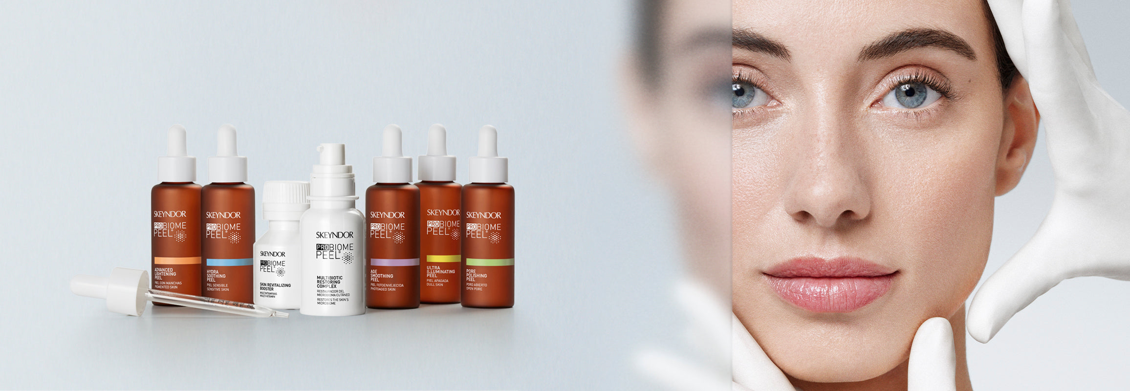 PROBIOME PEEL, die professionelle Linie für chemische Peelings mit fortschrittlicher Pflege, die die Hautregeneration beschleunigt und das Hautmikrobiom wiederherstellt.