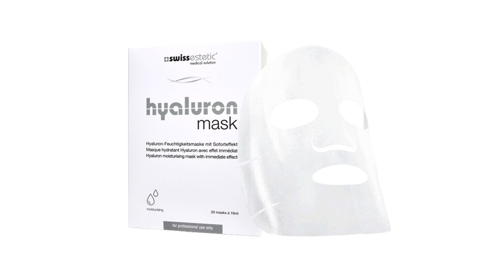 Mit der prof. hyaluron mask bietet swissestetic eine innovative Gesichtsmaske aus natürlicher Baumwolle, die für die professionelle Anwendung entwickelt wurde.