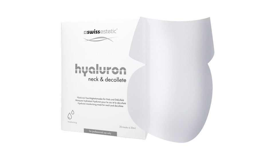 Mit der prof. hyaluron neck & decollete mask bietet swissestetic eine innovative Gesichtsmaske aus natürlicher Baumwolle, die für die professionelle Anwendung entwickelt wurde.